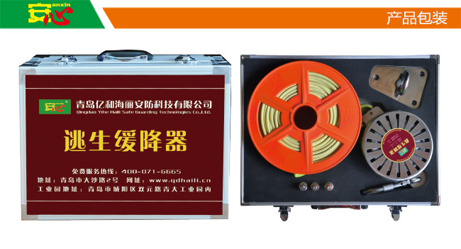 逃生緩降器(30米和36米防火版)就為大家保駕護航。逃生緩降器主要針對普通家庭和個人使用, 產品特點有如下:耐高溫性能。防火繩索瞬時耐高溫可達500 ℃ ,k內由六股航空鋼絲、外由進口凱夫拉包芯編織制成,耐磨性、防切割性為傳統產品兩倍以上;自冷卻功能。緩降器獨特的結構設計可有效控制緩降器在連續使用時內部溫度的升高(保持在 60攝氏度以內),延長使用壽命;安全帶有反向防滑脫裝置,防止人員從安全帶中滑脫,安全可靠。