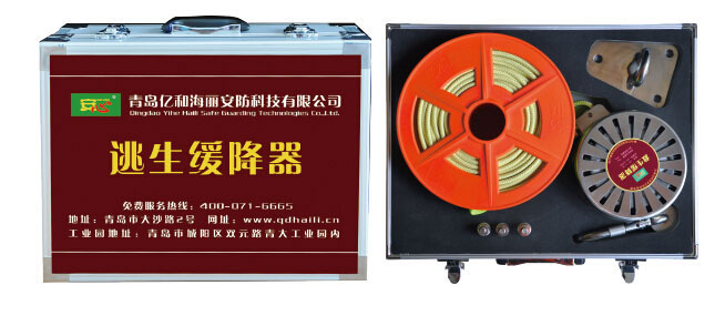 “安心牌”緩降器,考慮到火災時逃生時間緊,逃生空間小,逃生處環境復雜,可能無幫手等特點,它不借助外力,僅靠人體自重就可工作,完全可以一人快速自救逃生,并可實現勻速下落或者懸停的裝置。