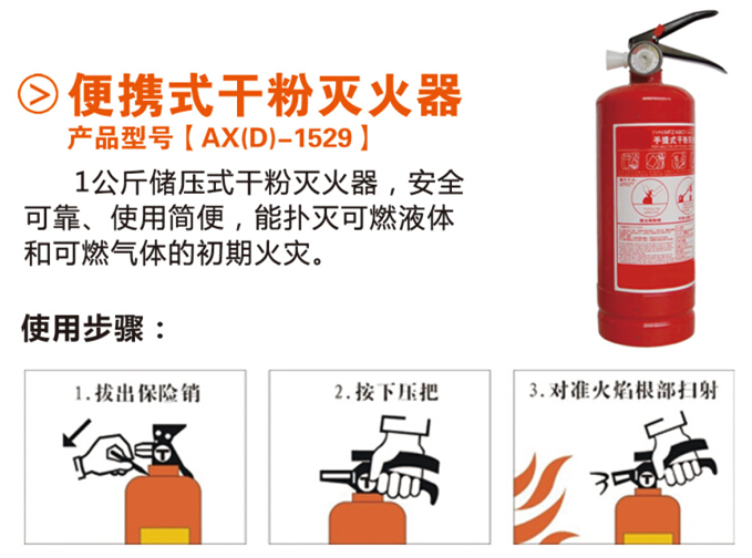 1、滅火器。簡易式干粉滅火器,能撲滅普通的固體材料火、可燃液體和氣體的初期火災(zāi),用于家庭初期火災(zāi)的控制。