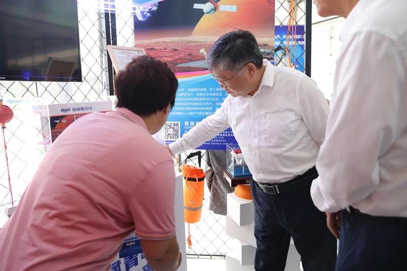 國家工信部科技司一級巡視員畢開春、山東省工信廳一級巡視員羅新軍、青島市副市長耿濤等領(lǐng)導(dǎo)蒞臨海麗雅展位,對集團“海麗安心”安全應(yīng)急產(chǎn)品、“蛟龍”高端特種繩纜裝備給予肯定。
