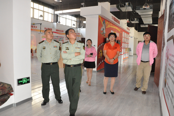 9月25日,青島市公安消防局防火監督處處長姜豐林與青島市公安消防局參謀長潘同森蒞臨海麗雅集團,在公司董事長張旭明的陪同下參觀了應急安全教育培訓中心及產品展廳并給予肯定,同時對應急安全教育培訓中心的日后規劃建設進行指導。