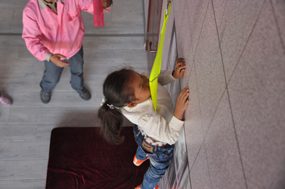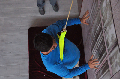 走進培訓中心,豐富的體驗點讓學生們歡呼雀躍,3D技術短片《災難警示錄》播放過程中,地震來臨,成群老鼠亂竄,觀看的孩子情不自禁抬起雙腳遠離地面;消防標志識別系統、火災隱患識別查找系統等寓學于樂小游戲,孩子們在爸爸媽媽的幫助下邊學邊玩,邊相互比賽,不亦樂乎;滅火器激發孩子動手欲望,孩子們眼睛緊緊盯著滅火器,不等解說員講解完就迫不及待的體驗;在高層樓宇緩降器體驗區,劉宸鑠在爸爸的鼓勵下體驗高層緩降,成功著地后,劉宸鑠歡呼的拽著爸爸一起高層緩降,體驗完高層緩降之后,劉宸鑠爸爸告訴講解員:“剛開始心里有點擔心,現在孩子和我都體驗完之后,感覺很安全,孩子不但學會了高層緩降,發生火災時能保護自己,而且鍛煉了孩子的勇氣”;119火災報警系統區域,張笑芊一秒鐘也等不及的想要體驗,索性和旁邊同學共用一個電話體驗,兩人異口同聲的回答,引來家長陣陣笑聲。