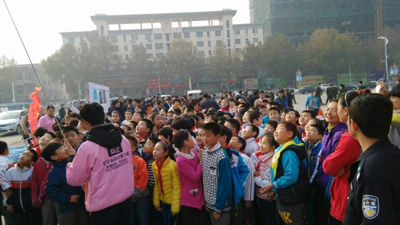 學(xué)生等待體驗高層樓宇緩降器