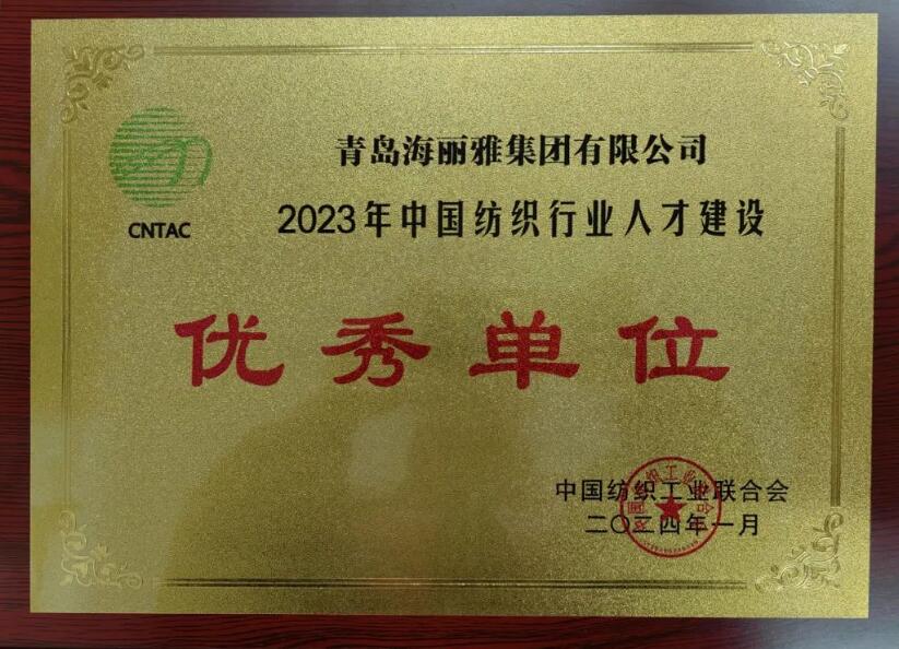 喜報(bào)|青島海麗雅集團(tuán)榮獲“2023年中國(guó)紡織行業(yè)人才建設(shè)優(yōu)秀單位”稱號(hào)