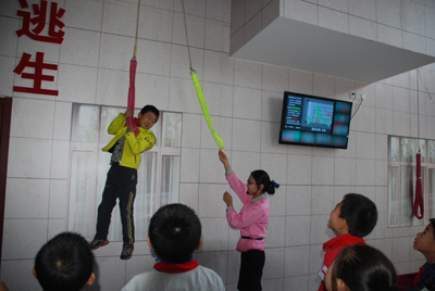 滅火器科學滅火、高層樓宇緩降器、心肺復蘇、地震體驗平臺、119報警模擬系統、交通標志識別小游戲、火災隱患識別小游戲等眾多體驗點,讓第一次接觸到這些的孩子們興奮不已。其中高層樓宇緩降器大受孩子們的喜愛,不僅男孩子爭先體驗,其高安全性讓女孩子變成“女漢子”,爭相體驗。普集路小學的郭東盛告訴講解員最喜歡高層樓宇緩降器,好玩又刺激,自己家住高層,如果發生火災也不會害怕,借助高層樓宇緩降器逃生很安全。煙霧逃生走廊、地震體驗平臺、使用滅火器科學的滅火等等,都被體驗的學生團團圍住。