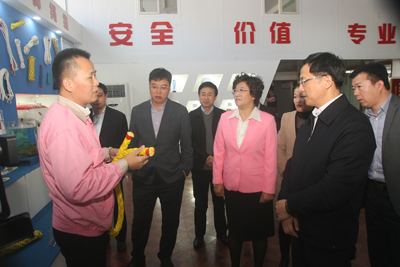 惠書記在產品展廳詳細了解特種繩纜、車載系列應急產品、高層樓宇緩降器等展出產品核心技術和功能之后,高度贊揚了海麗雅集團的不斷創新精神,適應市場的需求,產品從單一到多樣化,依靠科技創新成功轉型,成為中小企業 發展的榜樣。
