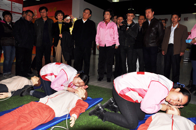 在培訓(xùn)中心,楊主席及眾委員逐一參觀了各體驗(yàn)點(diǎn),在醫(yī)療自救培訓(xùn)區(qū)親身體驗(yàn)心肺復(fù)蘇項(xiàng)目,對(duì)寓學(xué)于樂、災(zāi)難場(chǎng)景再現(xiàn)、“體驗(yàn)+培訓(xùn)”的模式給予贊揚(yáng),指出讓更多的群眾走進(jìn)培訓(xùn)中心,以培訓(xùn)中心為平臺(tái),將應(yīng)急自救知識(shí)和技能以星星之火燎原到社會(huì)各個(gè)角落,切實(shí)為生命和健康增添一份“保單” 。
