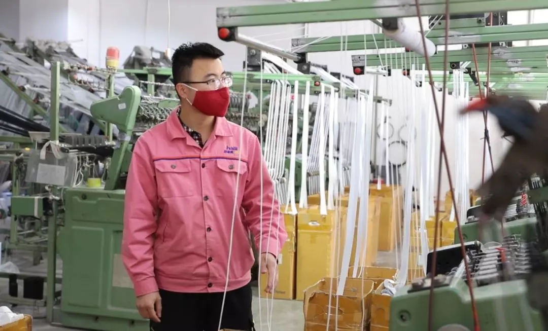 1月30日(正月初六)下午,青島海麗雅集團董事長張旭明接到一位老客戶的電話,得知有300萬只口罩沒有口罩耳帶而無法給醫護人員使用;為了助力抗擊疫情,滿足醫護人員和人民群眾對口罩的需求,集團決定把具有高附加值產品的特種繩纜訂單下線,立馬生產附加值低、利潤薄弱的“新”產品——口罩耳帶。