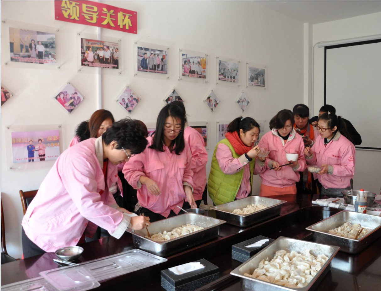 鬧元宵:“每逢佳節倍思親”, 節日當天,因公司非本市員工不能與家人團聚共渡佳節,在董事長提議下,黨支部副書記、工委主席崔俊芬女士帶領大家一起,專門為外來務工人員和在公司住宿的大學生煮元宵、包水餃,并同大家一起過節。領導的體貼和關懷,讓大家切身感受到“海麗大家庭”的溫暖。