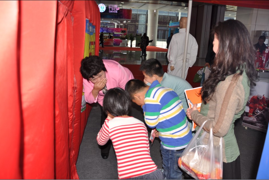 展會上,海麗集團的子公司-青島億和海麗安防科技有限公司不僅展示了最先進、實用的應急自救產品,還設立了煙霧逃生帳篷、高層樓宇救生緩降器等應急自救體驗區供市民免費體驗,讓大家通過切身體驗的方式,輕松掌握應急消防常識和自救逃生技能。這種新穎而又充滿刺激的體驗方式,引起了不少參觀者的興趣和圍觀。其中不乏勇敢的小朋友,大家都躍躍欲試,紛紛報名體驗。