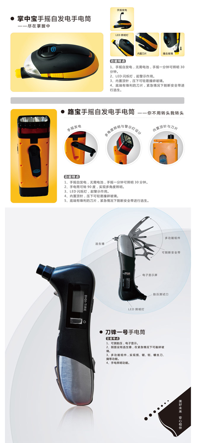 產品名稱:手搖式自發電手電筒(車載系列)